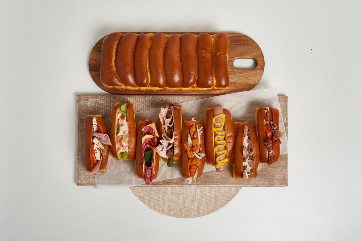 HOT DOG PUFF PASTRY. A golden, flaky pastry filled with Frankfurt-style sausage and classic ketchup.- CHEESE STICK. A creamy, crunchy bite combining cheese cream with a flaky, golden pastry, topped with gratinated Emmental cheese.