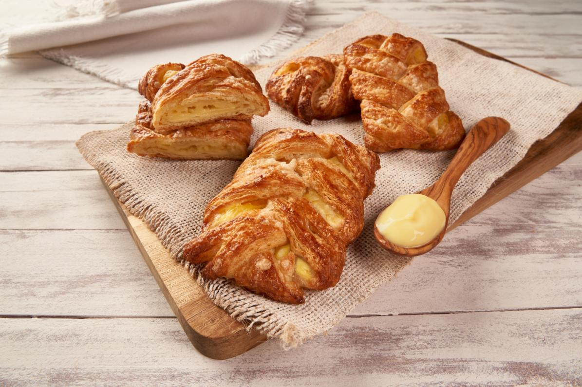 Por otro lado, está la Trenza de Crema. Un producto muy sofisticado con un relleno cremoso (27% de crema enriquecida con leche y huevo) y una cobertura de azúcar perlado que se carameliza al horno y hace las delicias de los más golosos. Por si fuera poco, ofrece un contraste único entre la superficie crujiente y el interior suave que la hace sencillamente adictiva. Ya fermentada y lista para hornear, funciona a la perfección en desayunos, meriendas y coffee breaks aportando un atractivo irresistible en cualquier momento del día.