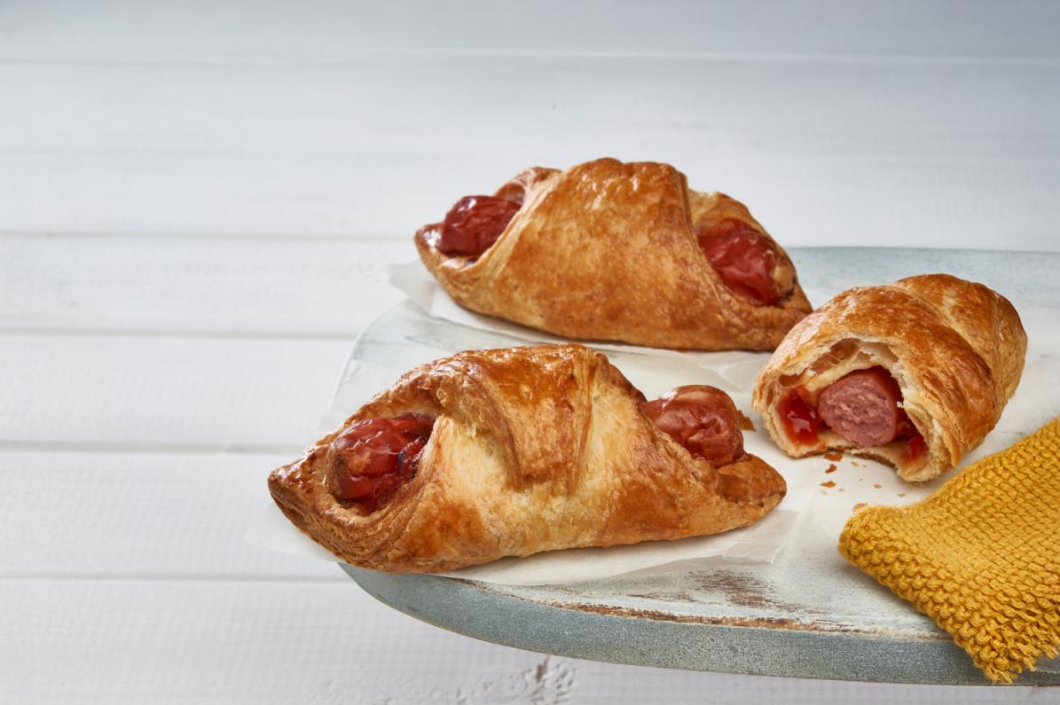 El Pañuelo Hot Dog es una apetecible pieza de bollería salada que se inspira en el street food, pero que reinventa ligeramente su receta. De masa hojaldrada y dorada (muy apetecible a la vista), destaca especialmente por su relleno, elaborado con un 48% de salchicha tipo frankfurt y salsa de ketchup. Es un alimento universal, que gusta por el equilibrio entre lo de fuera y lo de dentro y que solemos vincular con eventos deportivos, ferias, o conciertos, por lo que conlleva un alto componente emocional en sí mismo. Un snack rápido, saciante y versátil, ideal para cafeterías, estaciones de servicio, caterings y restauración moderna que aporta diferenciación en el lineal y en la carta.