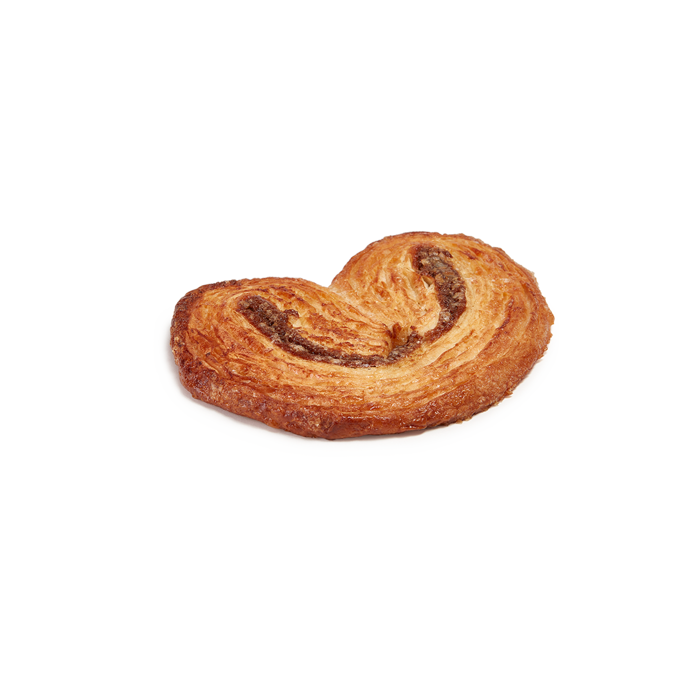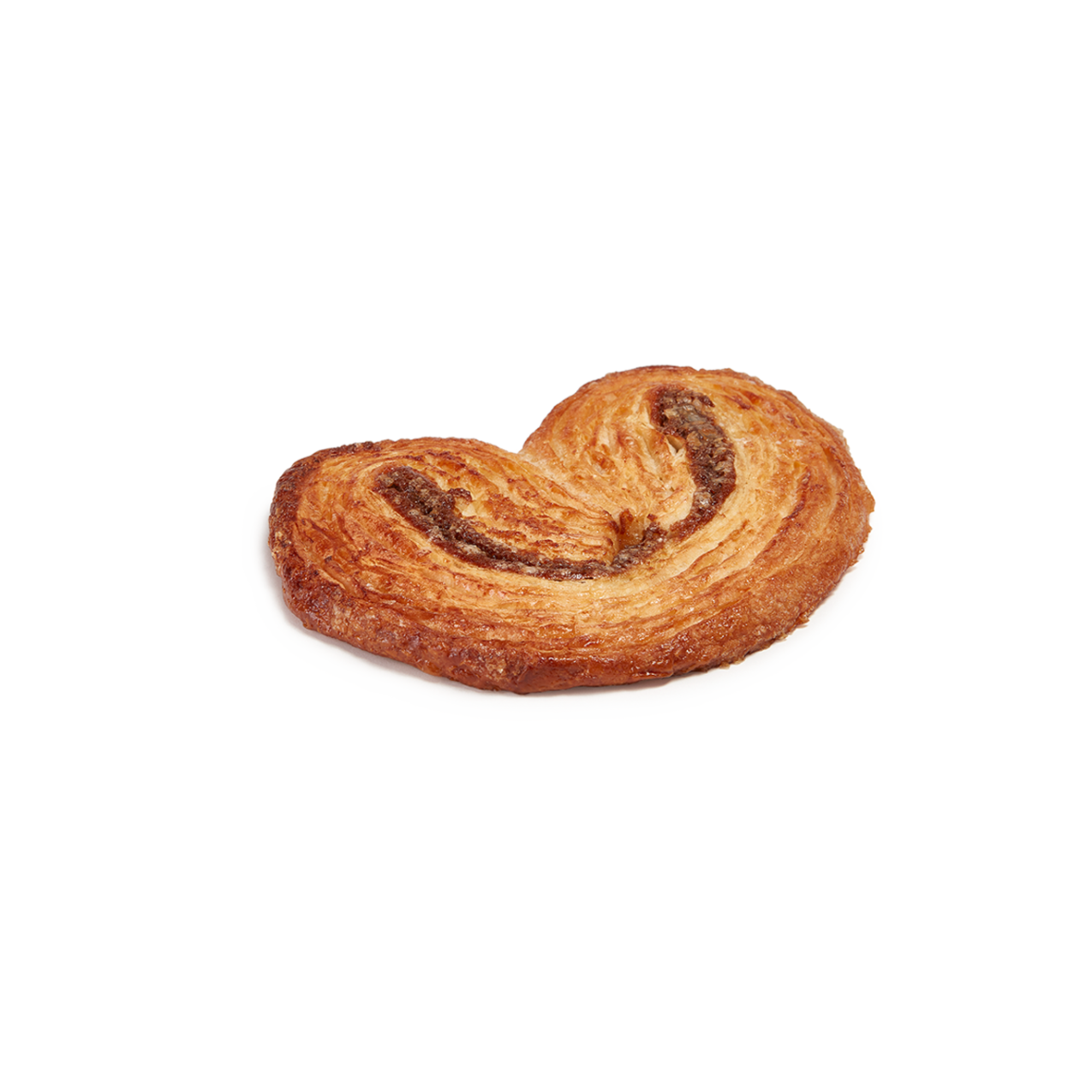 Palmera elaborada con masa de croissant, rellena de canela y un acabado con azúcar que aporta brillo y un aspecto crujiente.
