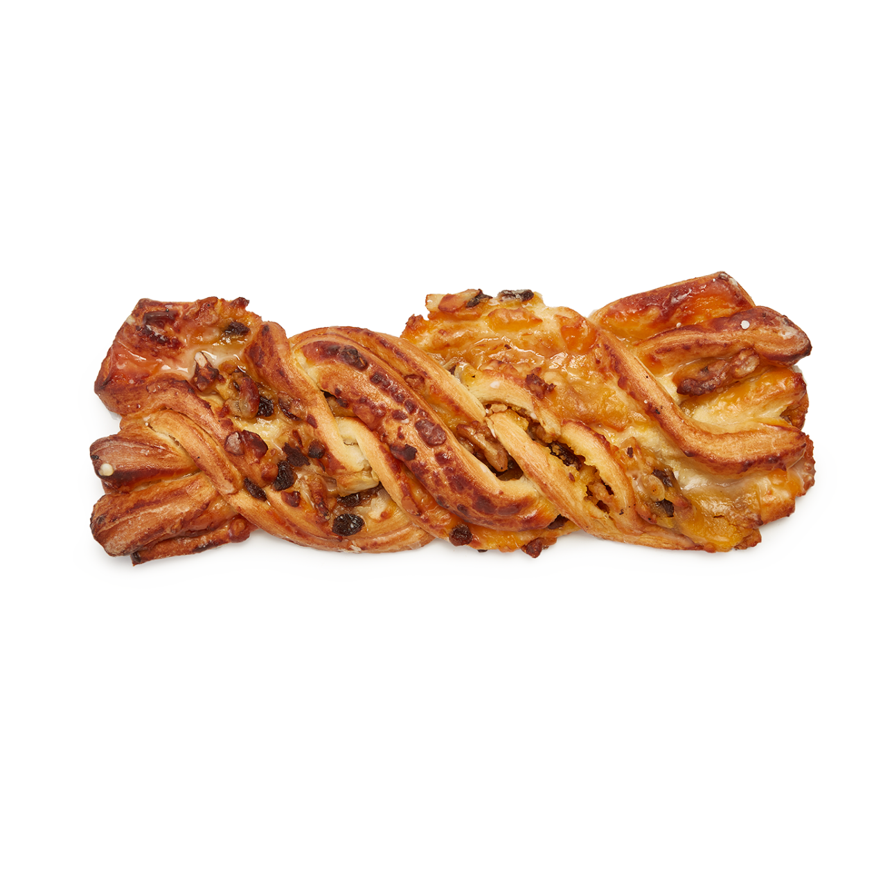Hojaldre dorado y jugoso relleno de crema y yema, decorado con nueces, pasas y almendras para un acabado tradicional y muy atractivo. Trenzado a mano. Es una pieza clásica, tierna y equilibrada en sabor.